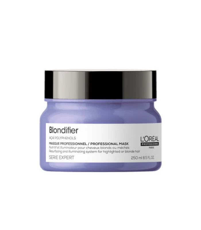 Le masque Blondifier est conçu pour entretenir tous les types de blonds (colorés, méchés). Il restaure la chevelure et la nourrit instantanément tout en lui apportant une brillance multi-dimensionnelle. Il laisse les cheveux doux et d'une brillance éclatante pour un blond lumineux.