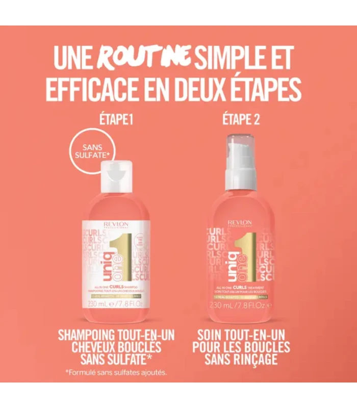 Pour maximiser l'hydratation et la définition de vos boucles, utilisez ce soin en complément d’un shampooing spécial boucles de la gamme UniqOne™.